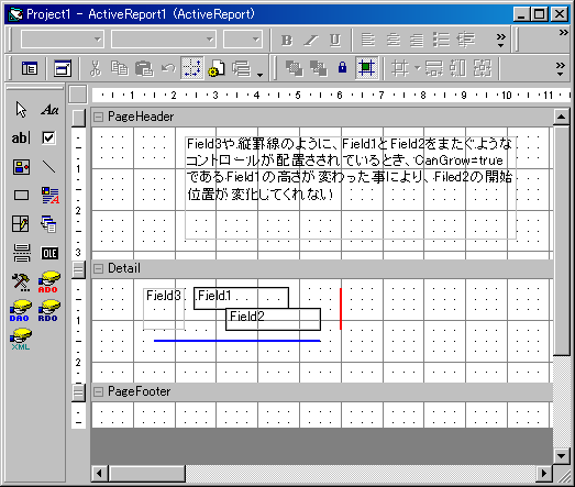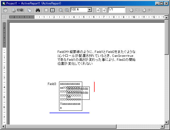 また、Line1の位置が、Field1の中に収まっていれば、影響しない。BeforePrintの段階で希望の位置に設定しなおす…という方法も考えられるぞ。