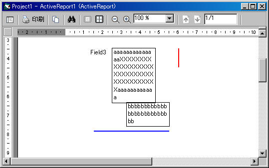 本現象を回避する方法としては、Field1のCanShrinkプロパティをFalse