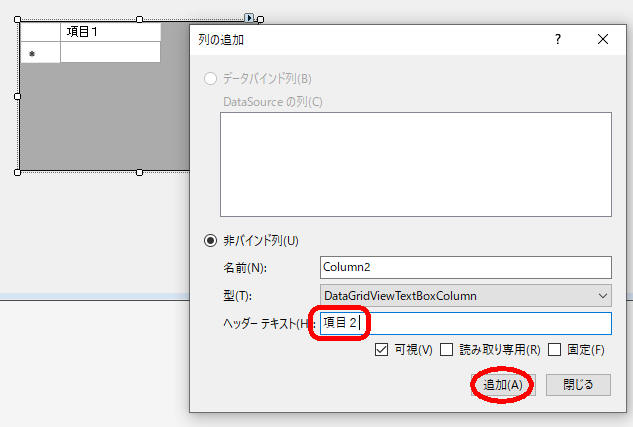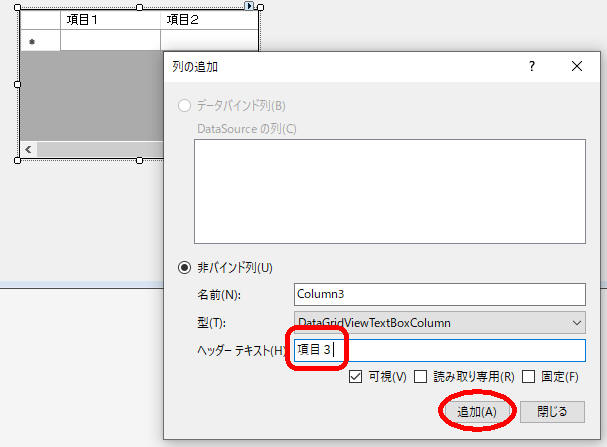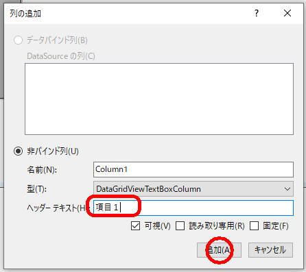 DataRow型にした関係で、項目名を文字列変数指定しているのが、苦しい。
