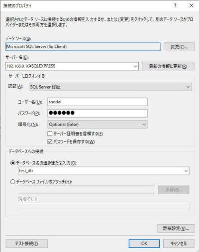 ああああさkjyせ¥」SQLServerは他のサーバーに構築してある