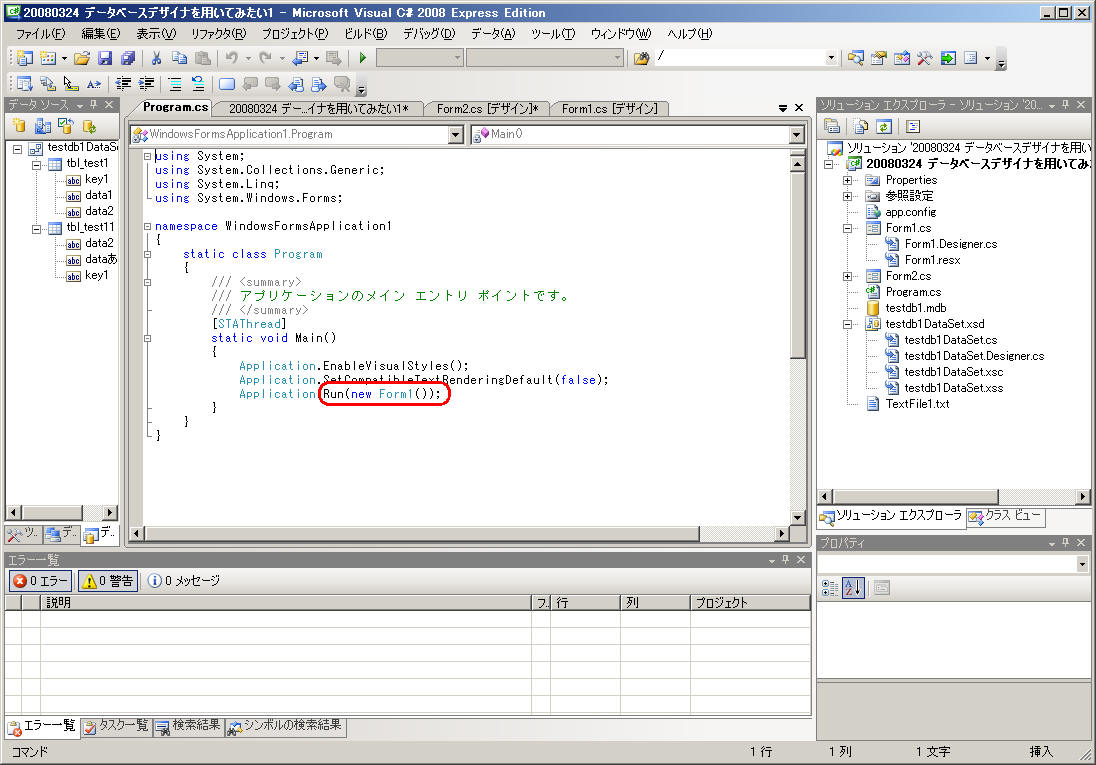 http://www.atmarkit.co.jp/fdotnet/vblab/vsdbprog_01/vsdbprog_01_01.html を参考にしながら、やってみる。