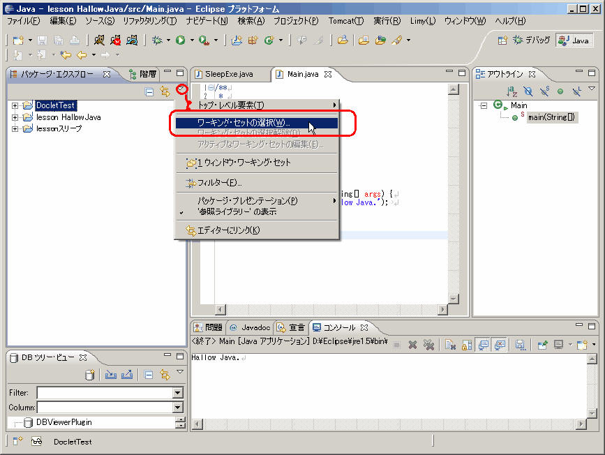 ワーキングセットとは、プロジェクトをツリーに表示する時のフィルタの働きをするようなもの