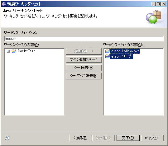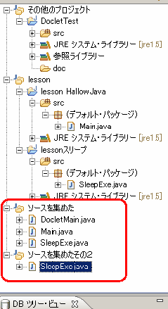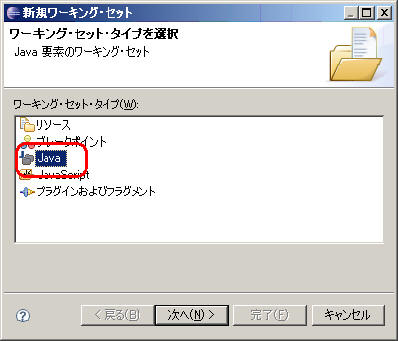各プロジェクトから、javaファイルだけを集めたワーキングセットを作ってみた