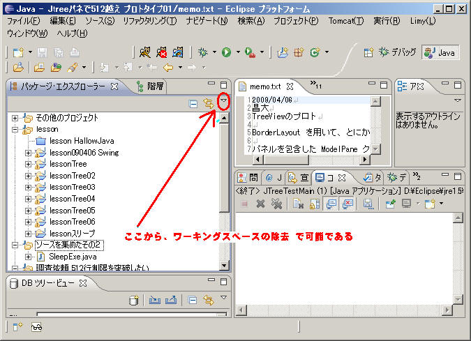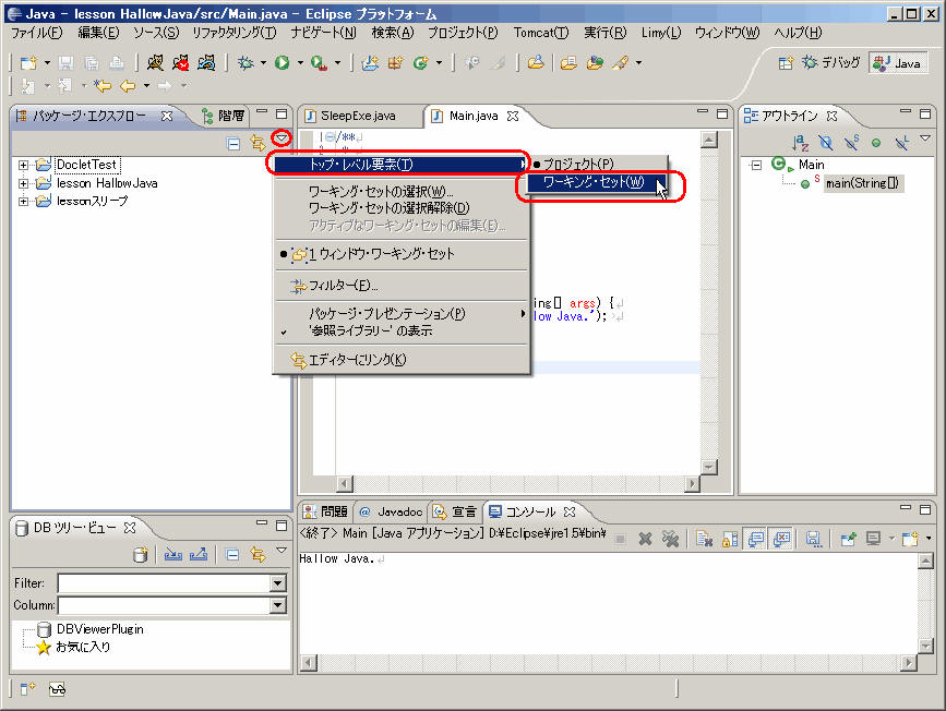 ワーキングセット単位にプロジェクトを表示するようにするには??