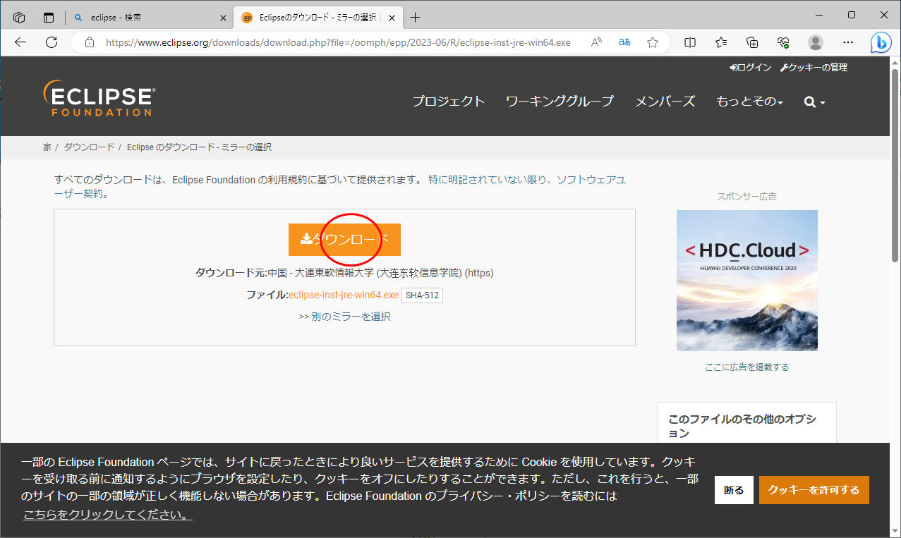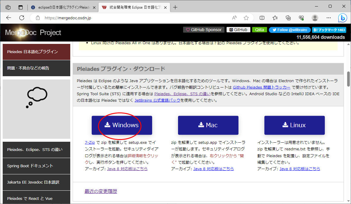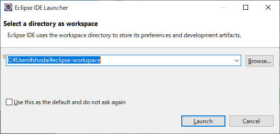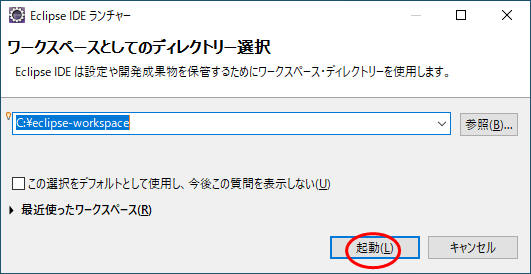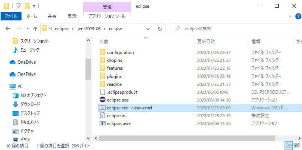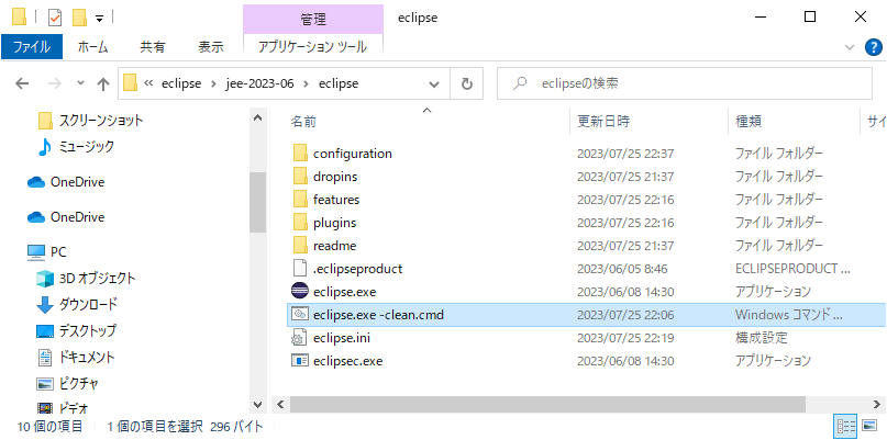 日本語化の初回のみ eclipse.exe -clean.cmd を実行