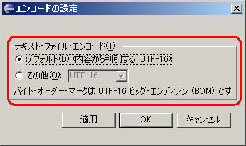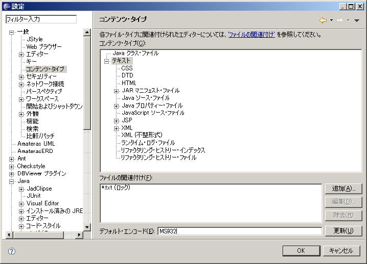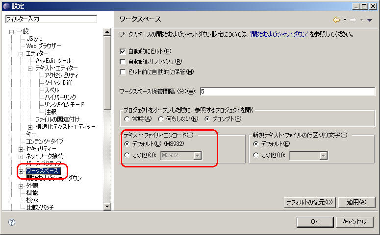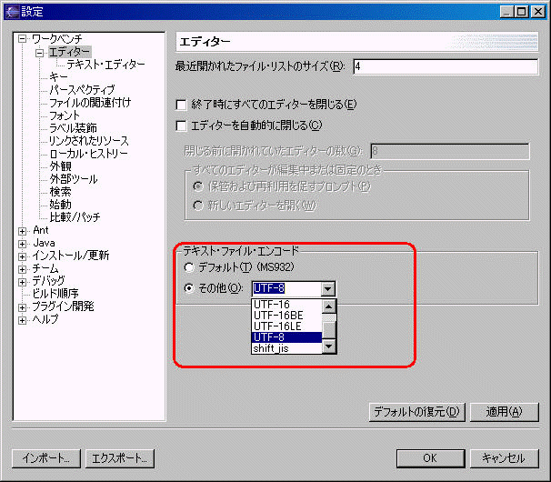 ShiftJis にする場合は MS932を設定