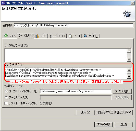 システムプロパティ( -D )を追加したい時