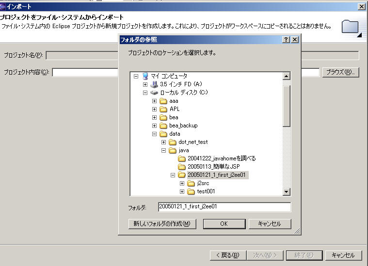 .project ファイルが存在するフォルダ名を指定すること。