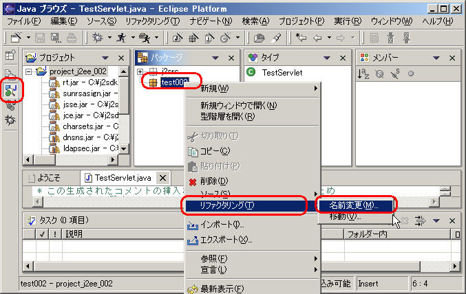それを、変更したい場合は、javaパースティクティブから、リファクタリング機能を利用してパッケージ名を変更すれば良い。