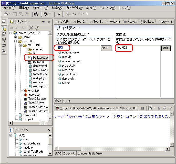 同様にして、シンプルなサーブレットプロジェクトのbuilder.xmlを出力させてみた