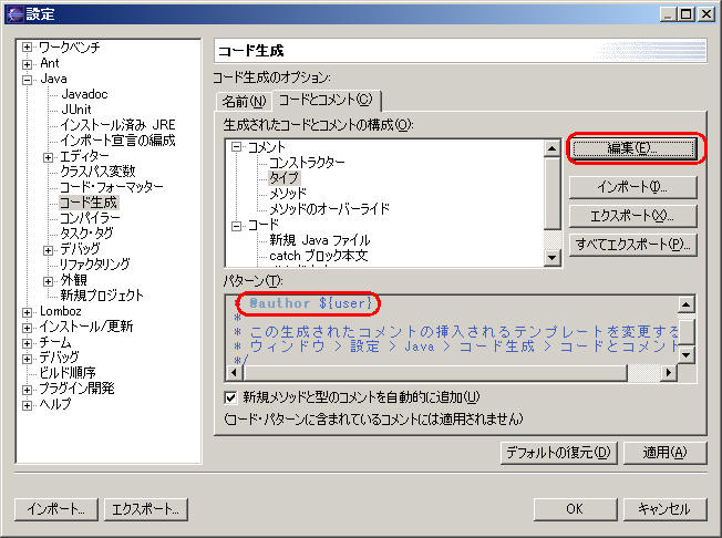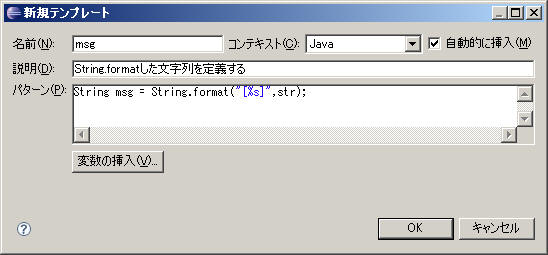 よく使うソースパターンを予め登録しておく方法として、エクリプスには 2種類の方法がある。