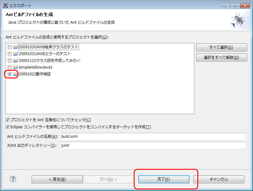 antタスクエディター から、ビルドの内容を作成する事も可能だが、ビルド内容を自動的に作成する方法がある。