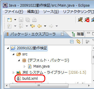 Eclipseでは、build.xmlファイルは、ant設定ファイルに位置づけられているようだ。