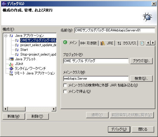 デバッグ実行用の設定ダイアログの表示の仕方