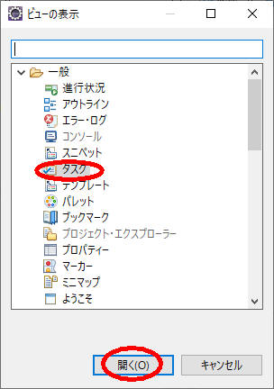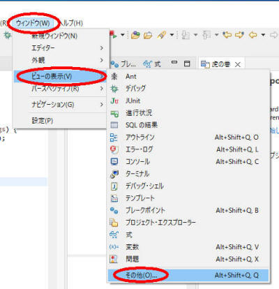 [ウィンドウ]→[ビューの表示]→[その他]
