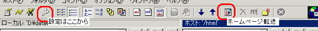 ホームページ転送機能が便利。これを使うと、ローカルのページ構成をそのままアップできる。IIS固有の制御ファイルのフォルダも転送しないようにできるし、前回アップした時の履歴を保管していてくれるので、毎回サーバー側と比較しなくて済む!