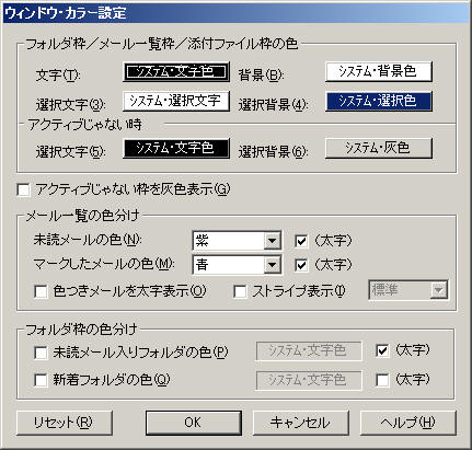 [メニューバー]→[設定]→[全般的な設定]→[カラー]