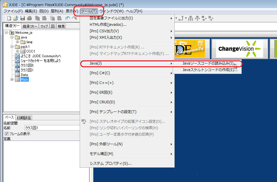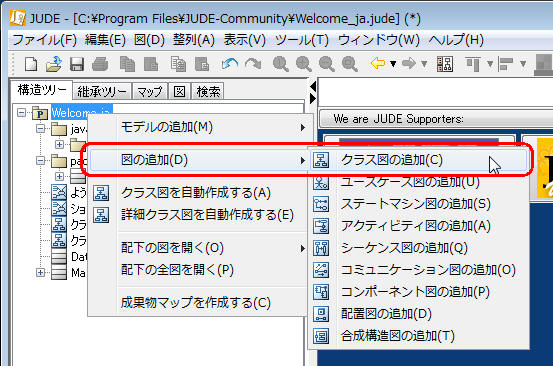 JUDE/Community 5.5.2 で ソースからクラス図を描く方法