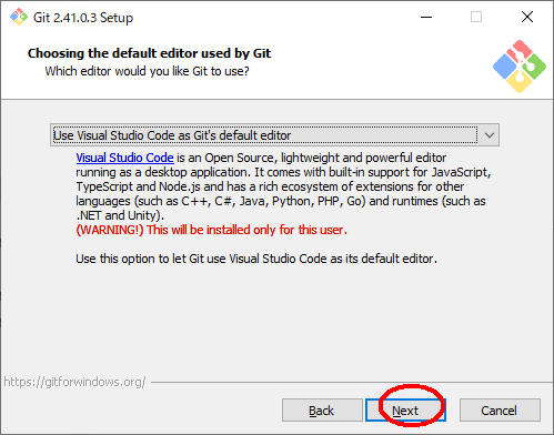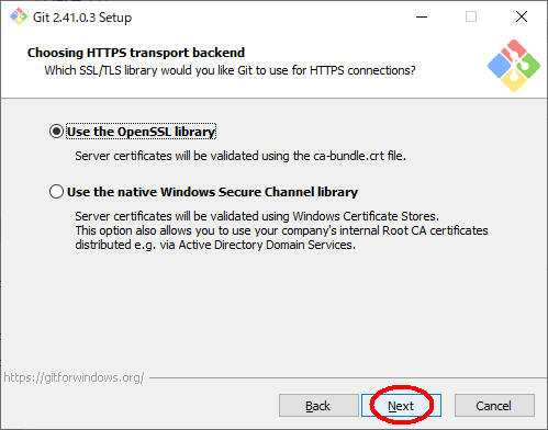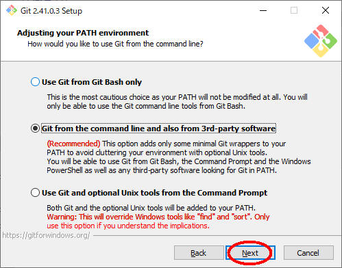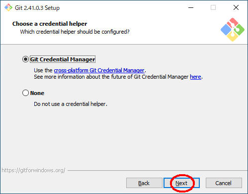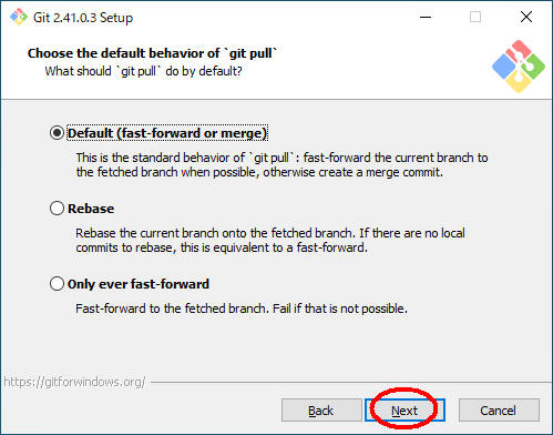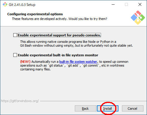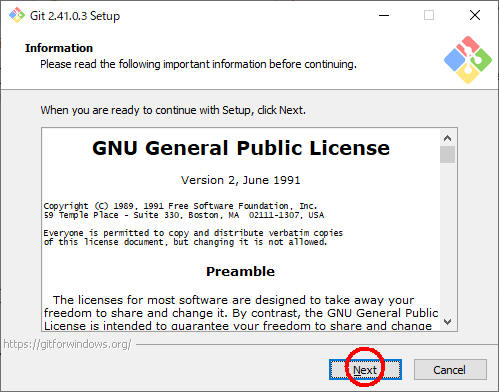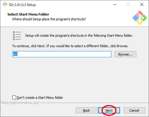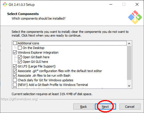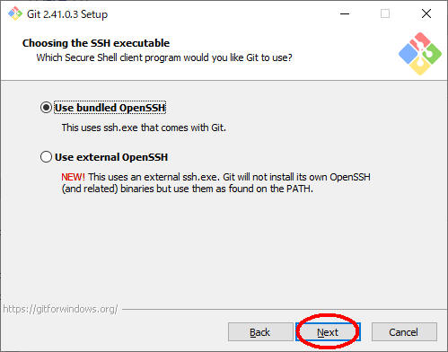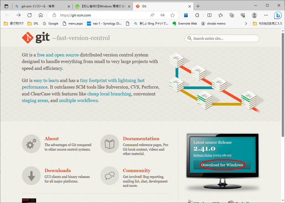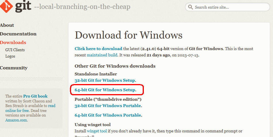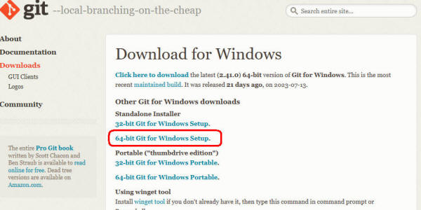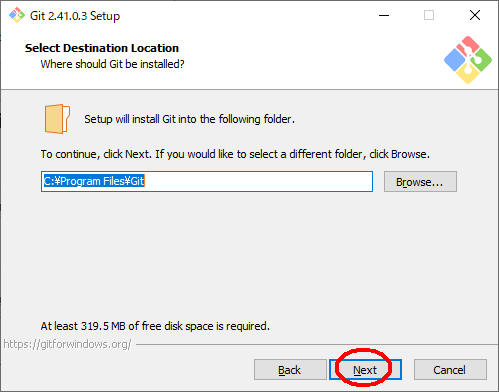 Git-2.41.0.3-64-bit.exe が取得できた。任意のフォルダで実行する