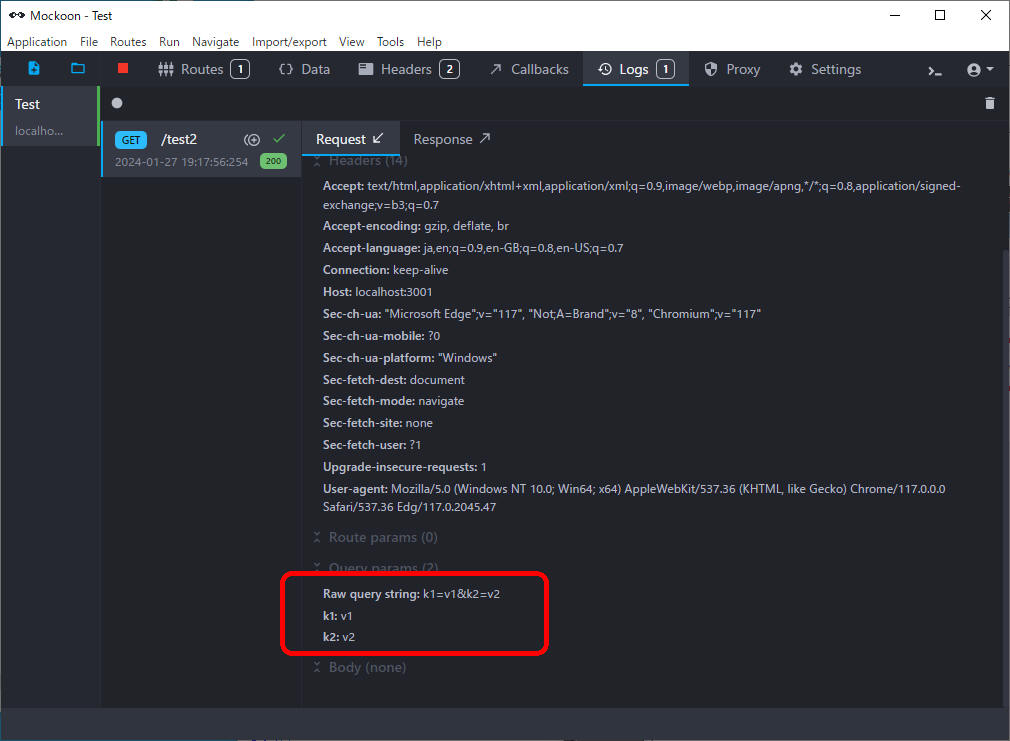 このとき、Mockonnは、ホスト名とポート番号単位でリスニングしているので、Pathなどは切らなくてもログは取れる