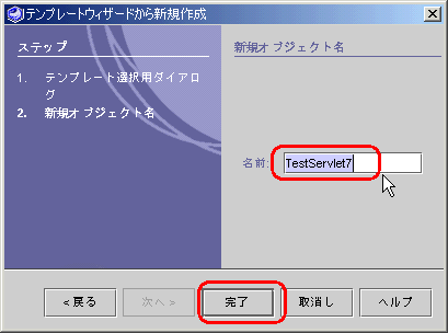 名前を指定して[完了]。これだけ。ここで指定した名前はサーブレットのクラス名になります。