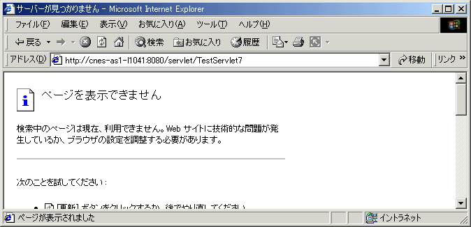WebブラウザからTomcatへリクエストをなげてみましょう。ちょうとアドレスが出ていますので、[F5]または[移動]などで再表示させてみましょう。