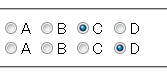 <input type="radio" value="A" name="R3">A <input type="radio" value="B" name="R3">B <input type="radio" value="C" name="R3">C <input type="radio" value="D" name="R3">D <input type="hidden" nodeType="radioInitValue" targetName="R3" initValue="C"> <BR> <input type="radio" value="A" name="R4">A <input type="radio" value="B" name="R4">B <input type="radio" value="C" name="R4">C <input type="radio" value="D" name="R4">D <input type="hidden" nodeType="radioInitValue" targetName="R4" initValue="D"> <BR> <script type="text/javascript"> funcSetRadioInitValue(); function funcSetRadioInitValue(){ $("[nodeType='radioInitValue']").each(function(){ var targetName = $(this).attr("targetName"); var initValue = $(this).attr("initValue"); if (initValue!=""){ var strSelecter = "[name='" + targetName + "'][value='" + initValue + "']" ; $(strSelecter).attr("checked","checked"); }else{ var strSelecter = "[name='" + targetName + "']" ; $(strSelecter).removeAttr("checked"); } }); } </script>