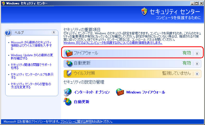 セキュリティセンターのファイアウォールが有効になっている可能性がある