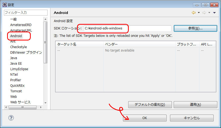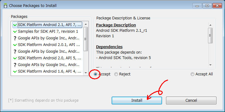 C:\android-sdk-windows\SDK Setup.exe を 実行
