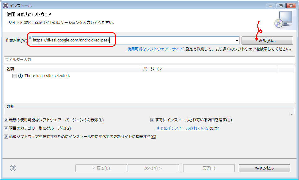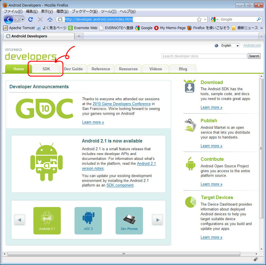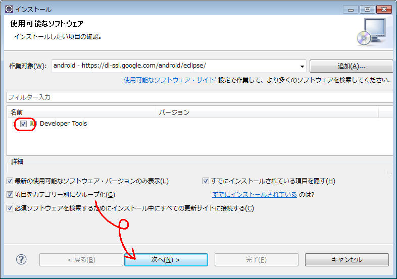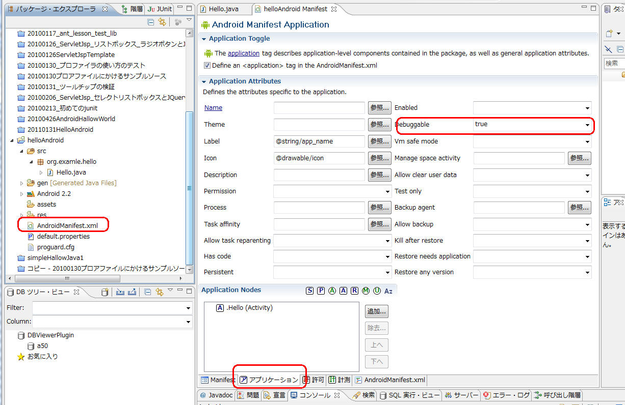 「Android Development Tools (ADT) plugin for Eclipse」は、Eclipse 統合開発環境に強力な拡張機能を追加します。拡張機能により、Android アプリケーションの作成とデバッグが容易になるそうな。
