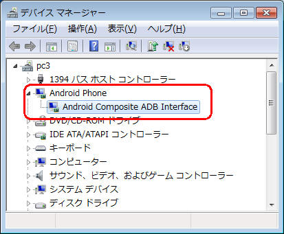 Eclipseが起動するPCに、AndoroidのUSBデバイスのインストールをしておく。