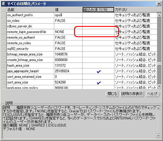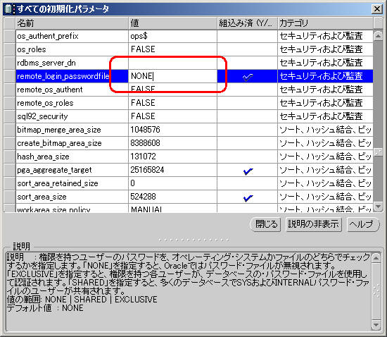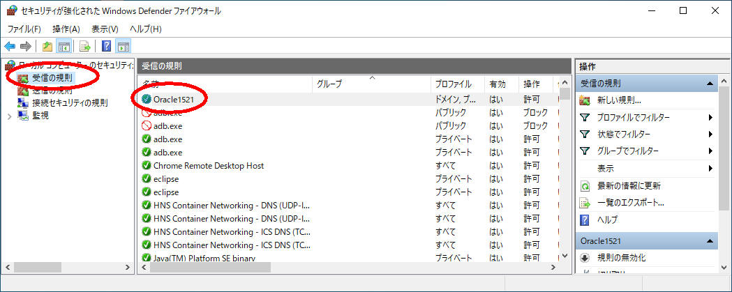 初期値では有効になっている場合が多く、1521番が閉じている。この場合