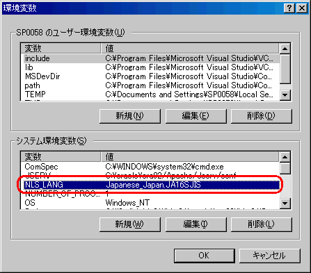 環境変数 NLS_LANG に、