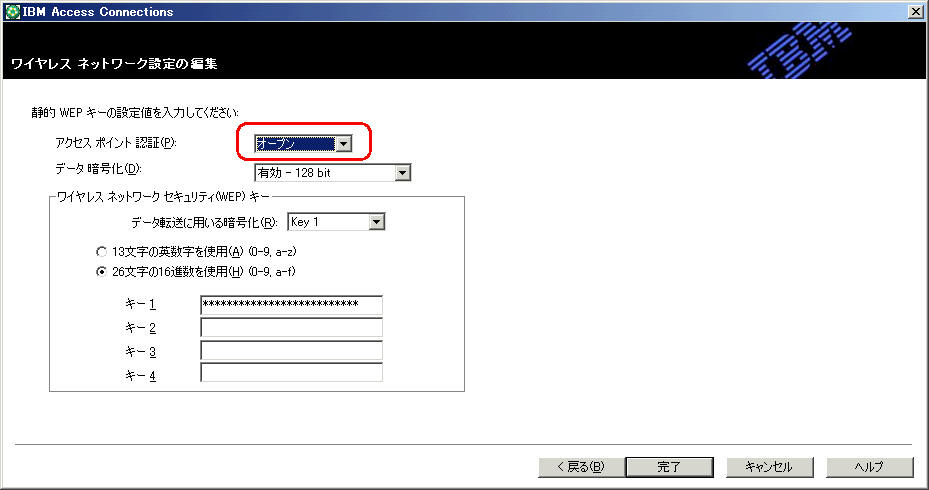 アクセスポイント認証は「オープン」だとうまく行きます。