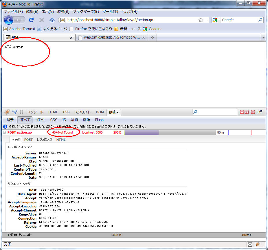 エラーページがあてがわれても、404が帰ってきている事が確認できました。