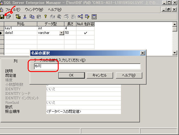 セーブをしようとうすると、テーブル名を聞いてくるので、[tbl1]としました。