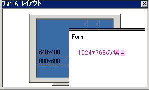 さらに、大きな解像度で保存したプロジェクトを、小さいサイズのPCで、フォームリソースを開かずしてコンパイルした場合も画面サイズに縮小されてしまうようだ!