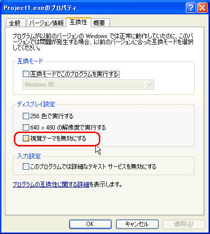 exeのプロパティから「視覚テーマを無効にする」をチェックすれば