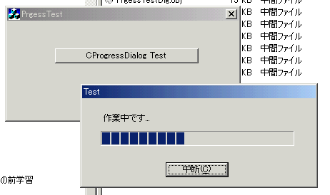 ProgressTestが、ダイアログベースのアプリケーションとして生成され、そこから、プログレスバー用のダイアログTestが生成されているようです。