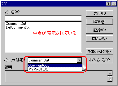 ロードファイルから、実行したいマクロが入っているマクロファイルを選択します。