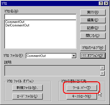 今回は、ツールバーに割り当てるので、再びオプションボタンを選択