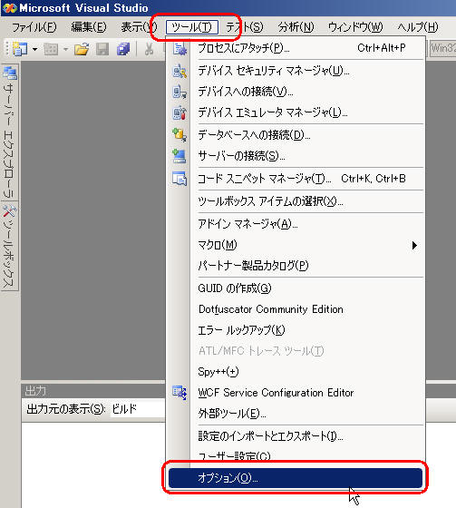 [ツール]→[オプション]