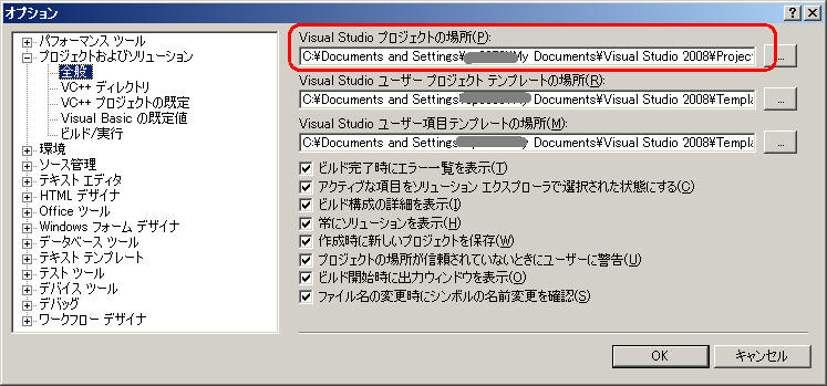 20080716 プロジェクトの初期格納フォルダの設定方法