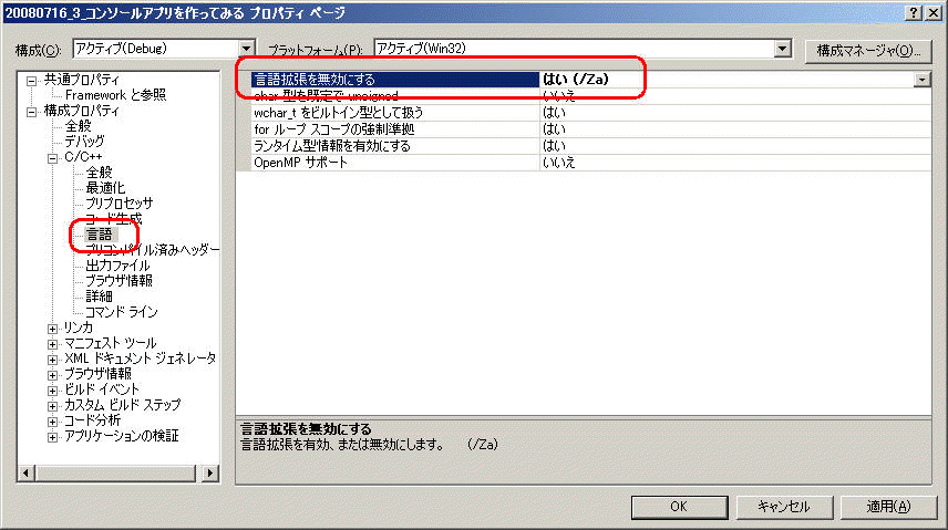 20080716 VS2008 で ピュアな C言語 コンソールアプリを作成したい