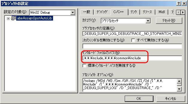 [プロジェクトの設定]→[C/C++]→[カテゴリ:一般]→[プリプロセッサ]