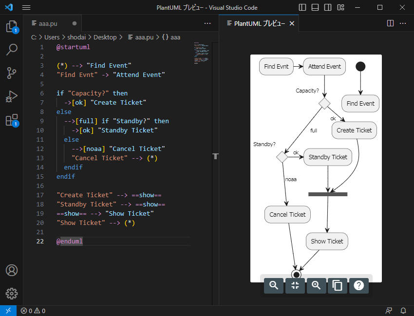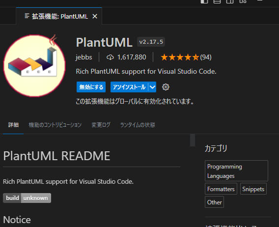 コマンドプロンプトで、java が実行できればそのまま、PlantUMLをインストールして実行できる。