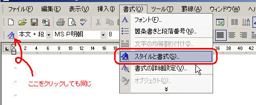 にて、上記“スタイルと書式”ダイアログを表示して設定することができる。