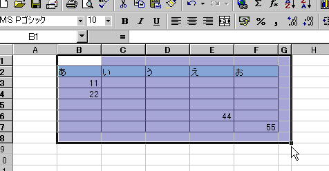 このとき、左側に余分な列を入れておくのがポイント。(右端が切れてしまう事が多い)