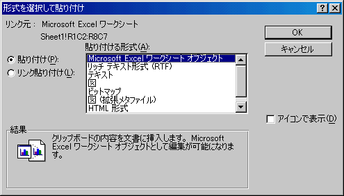 Microsoft Excel ワークシートオブジェクトで貼り付ける方法の他に、“図”として貼り付けるのも、安定しているぞ
